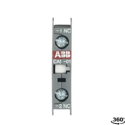 1SBN010014R1001 ABB: CA5-01-AU is a 1-pole front mounted auxiliary contact block equipped with screw terminals and can be fitted on A serie contactors and N serie contactor relays. CA5-01-AU is available with 1 N.C. instantaneous gold-flashed contact for standard industrial environments.