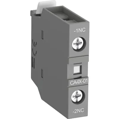1SBN011310R1001 ABB: CA4X-01 is a 1-pole front mounted auxiliary contact block equipped with screw terminals and can be fitted on AFC09...96 contactors and NFC contactor relays. CA4X-01 is available with 1 N.C. instantaneous contacts for standard industrial environments.