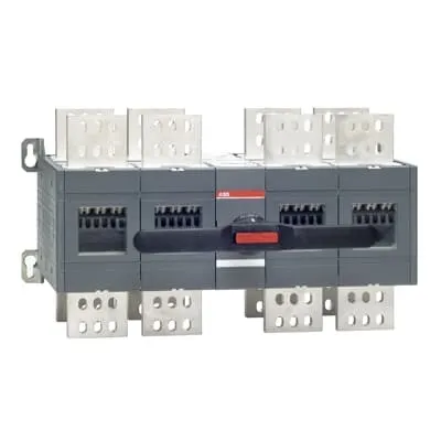 1SCA103953R1001 ABB: 2000A, 4 pole manual change-over switch including a black plastic IP65 I-0-II pistol type handle (see the table below), shaft and bolt set for the cable connection. Handle padlockable in the 0-position, door interlock in the I- and II- positions and when padlocked.