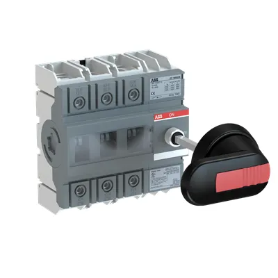 1SCA135138R1001 ABB: 3-pole, front operated, base mounted switch-diconnector with protected clamp terminals and with black IP65 handle and shaft