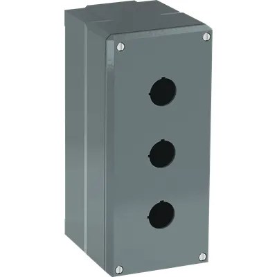 Feature → The enclosure uses grey aluminum with IP66-rated housing, delivering weatherproof protection and corrosion resistance for exterior or wet-lab environments. Business Impact → This reduces field maintenance, minimizes downtime, and extends service life in challenging settings. Application → Ideal for outdoor control panels, mining gear, or process lines where environmental exposure is a concern. Feature → 3-hole enclosure with holes and without conduit entry provides flexible wiring routes and clean installation. Business Impact → Simplifies wiring diagrams, speeds panel assembly, and lowers installation costs. Application → Suitable for pilot devices and MP-series modules in compact control boxes. Feature → Broad NEMA compatibility Type1, Type12, Type13, Type3, Type3R, Type3S, Type4, Type4X ensures versatile protection levels. Business Impact → Supports diverse system architectures without swapping enclosures. Application → Great for mixed-signal control circuits across automation cabinets. Feature → Aluminum housing plus stringent RoHS and REACH compliance minimizes regulatory risk. Business Impact → Reduces compliance gaps and supplier audit findings. Application → Comfortably supports global deployments with standardized material and finishes. Feature → Comprehensive certification portfolio including CE, UKCA, UL, cULus, CB, BV, and RINA. Business Impact → Accelerates project approval, cross-border sourcing, and customer acceptance. Application → Suitable for global OEMs delivering standardized control solutions.