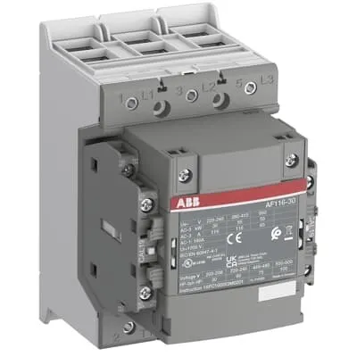 1SFL427001R4322 ABB: The AF116-30-22-43 is a 3 pole - 690 V IEC or 600 V UL contactor with double clamp, controlling motors up to 55 kW / 400 V AC (AC-3) or 75 hp / 480 V UL and switching power circuits up to 160 A (AC-1) or 160 A UL general use. Thanks to the AF technology, the contactor has a control voltage range (220-240 V 50/60 Hz),faster operation time, reducing panel energy consumptions and ensuring distinct operations in unstable networks. Furthermore, surge protection is built-in, offering a compact solution. AF contactors have a block type design, can be easily extended with add-on auxiliary contact blocks and an additional wide range of accessories.