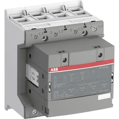 1SFL447101R1400 ABB: The AF140-40-00-14 is a 4 pole - 690 V IEC or 600 V UL contactor with double clamp, controlling motors up to 75 kW / 400 V AC (AC-3) / and switching power circuits up to 200 A (AC-1) or 175 A UL general use. Thanks to the AF technology, the contactor has a wide control voltage range (250-500 V 50/60 Hz and DC), managing large control voltage variations, reducing panel energy consumptions and ensuring distinct operations in unstable networks. Furthermore, surge protection is built-in, offering a compact solution. AF contactors have a block type design, can be easily extended with add-on auxiliary contact blocks and an additional wide range of accessories.