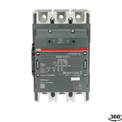 1SFL547002N1311 ABB: The AF265N5-30-11-13 NEMA Contactor is a 3 pole - 1000 V IEC or 600 V UL contactor with Main Circuit: Bars, controlling motors up to 132 kW / 400 V AC (AC-3) or 200 hp / 480 V UL 400 A (AC-1) or 350 A UL general use. Thanks to the AF technology, the contactor has a wide control voltage range (100-250 V, 50/60 Hz and DC), managing large control voltage variations, reducing panel energy consumptions and ensuring distinct operations in unstable networks. Furthermore, surge protection is built-in, offering a compact solution. AF contactors have a block type design, can be easily extended with add-on auxiliary contact blocks and an additional wide range of accessories.