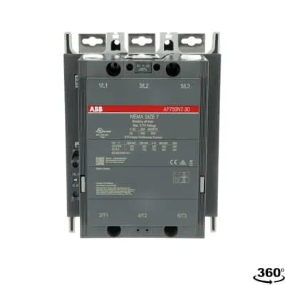 1SFL637001N7011 ABB: The AF750N7-30-11-70 NEMA Contactor is a 3 pole - 1000 V IEC or 600 V UL contactor with Main Circuit: Bars, controlling motors up to 400 kW / 400 V AC (AC-3) or 600 hp / 480 V UL 1050 A (AC-1) or 900 A UL general use. Thanks to the AF technology, the contactor has a wide control voltage range (100-250 V, 50/60 Hz and DC), managing large control voltage variations, reducing panel energy consumptions and ensuring distinct operations in unstable networks. Furthermore, surge protection is built-in, offering a compact solution. AF contactors have a block type design, can be easily extended with add-on auxiliary contact blocks and an additional wide range of accessories.