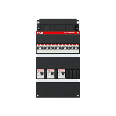 1SPF006901F0471 ABB: Small distribution board equipped Hafonorm 3xRCD 30mA, 4+4+4 ways, 3Ph+N Consumer Unit