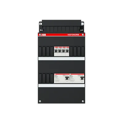 1SPF006902F0115 ABB: Small distribution board equipped Hafonorm 2xRCD 30mA, 2+2 ways, 3Ph+N Consumer Unit