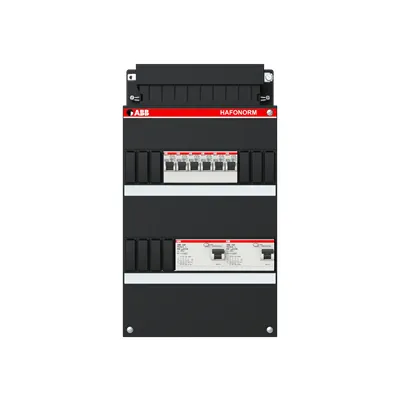 1SPF006902F0191 ABB: Small distribution board equipped Hafonorm 2xRCD 30mA, 3+3 ways, 3Ph+N Consumer Unit