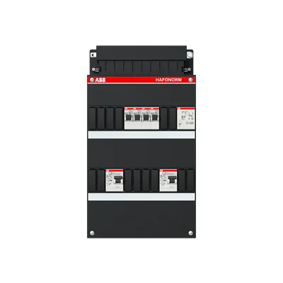 1SPF006903F0124 ABB: Small distribution board equipped Hafonorm 2xRCD 30mA, 2+2 ways+T, 1Ph+N Consumer Unit