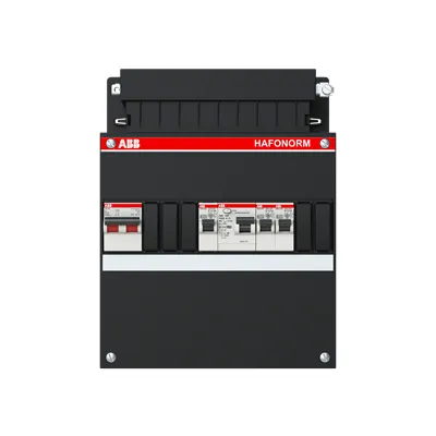 1SPF006905F0100 ABB: Small distribution board equipped Hafonorm Main Sw.40A, RCD30mA,2+1 ways, 1Ph+N Consumer Unit