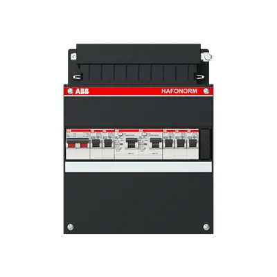 1SPF006905F0163 ABB: Small distribution board equipped Hafonorm Main Sw.40A, 2xRCD30mA,3+2ways, 1Ph+N Consumer Unit
