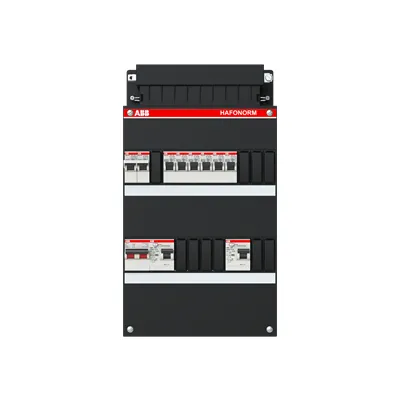 1SPF006905F0317 ABB: Small distribution board equipped Hafonorm Main Sw.40A, 2xRCD30mA,3+2ways+F,1Ph+N Consumer Unit