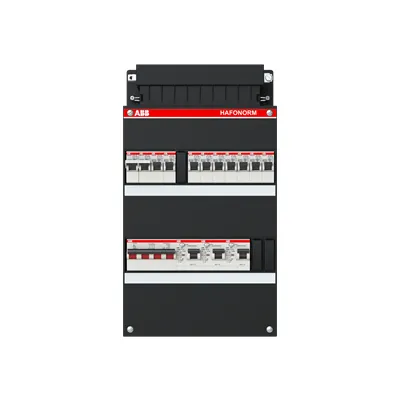 1SPF006905F0758 ABB: Small distribution board equipped Hafonorm Consumer unit Main switch 3x 40A, 3x RCD 9 groups + 2-pole cooking group