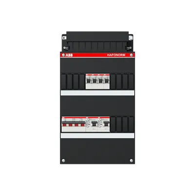 1SPF006905F1701 ABB: Small distribution board equipped Hafonorm 4x behind 2x 30mA + MS, 3-phase
