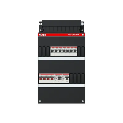 1SPF006905F1727 ABB: Small distribution board equipped Hafonorm 7x behind 2x 30mA + MS, 3-phase
