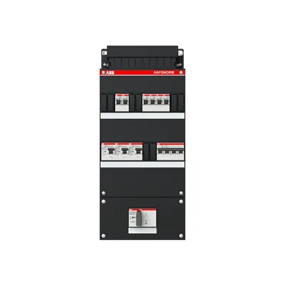 1SPF006905F1746 ABB: Small distribution board equipped Hafonorm 6x behind 3x 30mA = MS + D, 3-phase Main switch in sub box 110x220