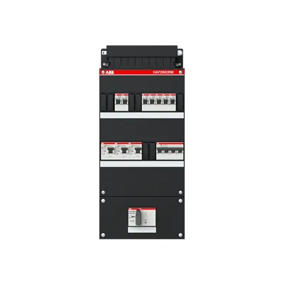 1SPF006905F1750 ABB: Small distribution board equipped Hafonorm 7x behind 3x 30mA = MS + D, 3-phase Main switch in sub box 110x220