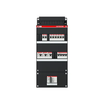 1SPF006905F1754 ABB: Small distribution board equipped Hafonorm 8x behind 3x 30mA = MS + D, 3-phase Main switch in sub box 110x220