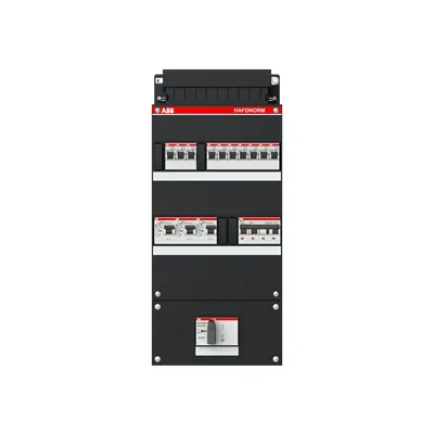 1SPF006905F1760 ABB: Small distribution board equipped Hafonorm 10x behind 3x 30mA = MS + C, 3-phase Main switch in sub box 110x220