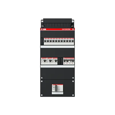 1SPF006905F1764 ABB: Small distribution board equipped Hafonorm 11x behind 3x 30mA = MS + C, 3-phase Main switch in sub box 110x220