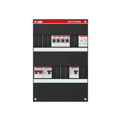 1SPF006905F5735 ABB: Small distribution board equipped Hafonorm Main Sw.40A, 3xRCD30mA,3+3+3ways,3Ph+N Consumer Unit