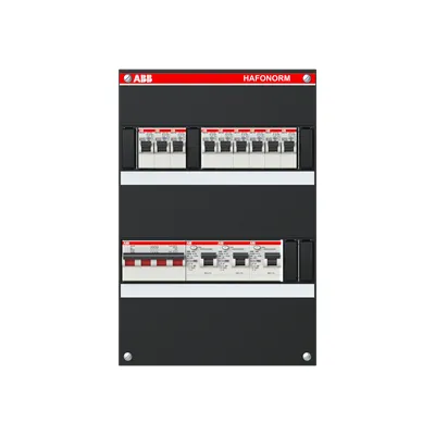 1SPF006905F5738 ABB: Small distribution board equipped Hafonorm MainSw.40A,3xRCD30mA,3+3+3ways,3Ph+N CU Interior