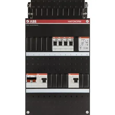 1SPF006907F0181 ABB: Small distribution board equipped Hafonorm MainSw.40A,2xRCD30mA,3+1ways+T,1Ph+N Consumer Unit