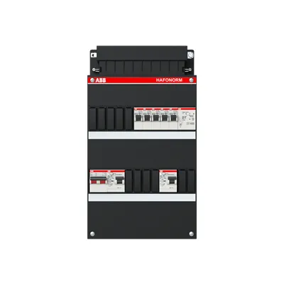 1SPF006907F0241 ABB: Small distribution board equipped Hafonorm MainSw.40A,2xRCD30mA,4+1ways+T,1Ph+N Consumer Unit