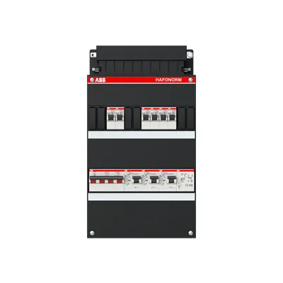 1SPF006907F0551 ABB: Small distribution board equipped Hafonorm MainSw.40A,3xRCD30mA,2+2+2ways+T,3Ph+N Consumer Unit