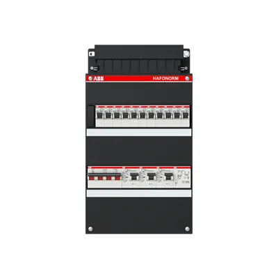 1SPF006907F0711 ABB: Small distribution board equipped Hafonorm MainSw.40A,3xRCD30mA,4+4+3ways+T,3Ph+N Consumer Unit