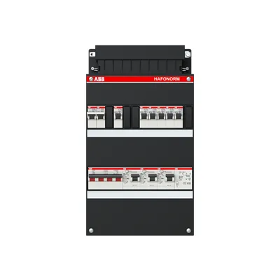 1SPF006907F0741 ABB: Small distribution board equipped Hafonorm MainSw.40A,3xRCD30mA,6 ways+FT,3Ph+N Consumer Unit