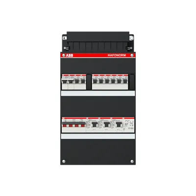 1SPF006907F0749 ABB: Small distribution board equipped Hafonorm MainSw.40A,3xRCD30mA,8 ways+FT,3Ph+N Consumer Unit