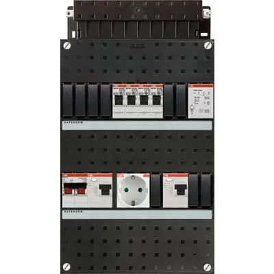 1SPF006907F1125 ABB: Small distribution board equipped Hafonorm MainSw.40A,2xRCD30mA,2+2ways+T,1Ph+N Consumer Unit with 1 socket outlet