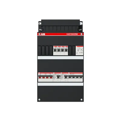 1SPF006907F1705 ABB: Small distribution board equipped Hafonorm 4x behind 2x 30mA + T + MS, + D, 3-phase
