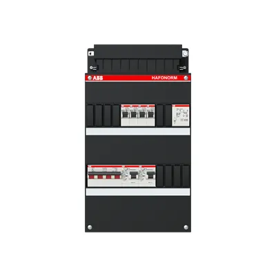 1SPF006907F1708 ABB: Small distribution board equipped Hafonorm 4x behind 2x 30mA + T + MS, 3-phase