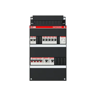 1SPF006907F1717 ABB: Small distribution board equipped Hafonorm 5x behind 2x 30mA + F + T + MS, 3-phase