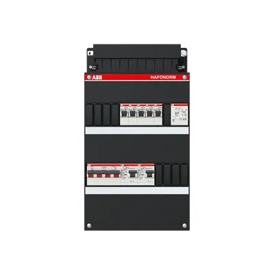 1SPF006907F1718 ABB: Small distribution board equipped Hafonorm 5x behind 2x 30mA + T + MS, 3-phase