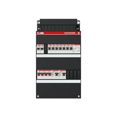 1SPF006907F1733 ABB: Small distribution board equipped Hafonorm 7x behind 2x 30mA + F + T + MS, 3-phase