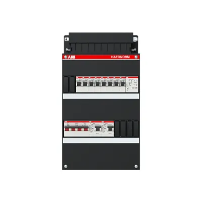 1SPF006907F1742 ABB: Small distribution board equipped Hafonorm 8x behind 2x 30mA + T + MS, 3-phase
