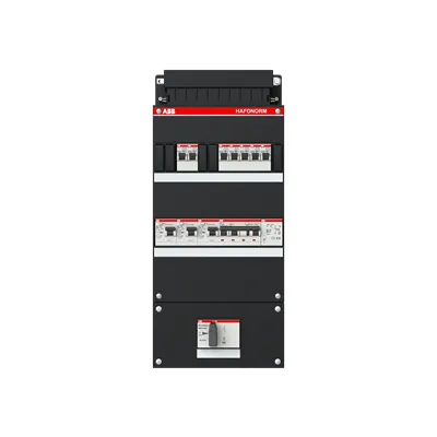 1SPF006907F1749 ABB: Small distribution board equipped Hafonorm 7x behind 3x 30mA = MS + C + T, 3-phase Main switch in sub box 110x220