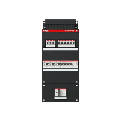 1SPF006907F1759 ABB: Small distribution board equipped Hafonorm 9x behind 3x 30mA = MS + D + T, 3-phase Main switch in sub box 110x220