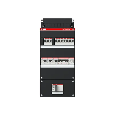1SPF006907F1761 ABB: Small distribution board equipped Hafonorm 10x behind 3x 30mA = MS + C + T, 3-phase Main switch in sub box 110x220