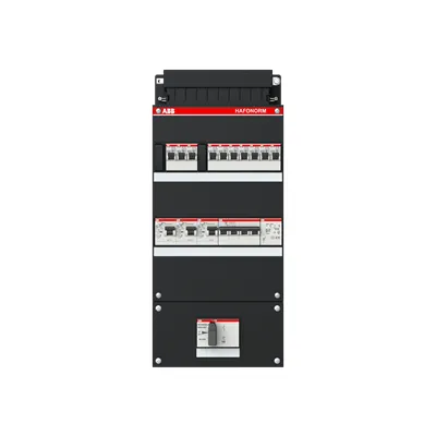 1SPF006907F1763 ABB: Small distribution board equipped Hafonorm 10x behind 3x 30mA = MS + D + T, 3-phase Main switch in sub box 110x220