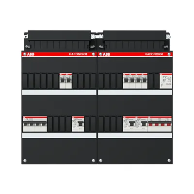 1SPF006907F2775 ABB: Small distribution board equipped Hafonorm 6x behind 3x 30mA = MS + D + T, 3-phase
