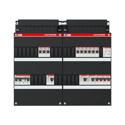1SPF006907F2785 ABB: Small distribution board equipped Hafonorm 9x behind 3x 30mA = MS + C + T, 3-phase