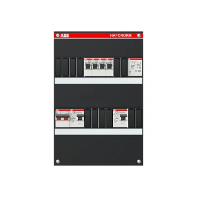 1SPF006907F5125 ABB: Small distribution board equipped Hafonorm MainSw.40A,2xRCD30mA,2+2ways+T,1Ph+N CU Interior