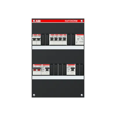 1SPF006907F5281 ABB: Small distribution board equipped Hafonorm MainSw.40A,2xRCD30mA,2+2ways+FT,1Ph+N CU Interior