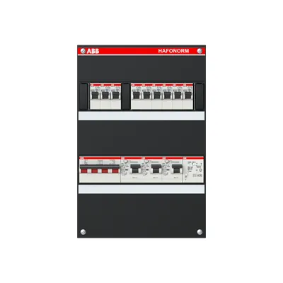 1SPF006907F5702 ABB: Small distribution board equipped Hafonorm MainSw.40A,3xRCD30mA,3+3+3ways+T,3Ph+N CU Interior