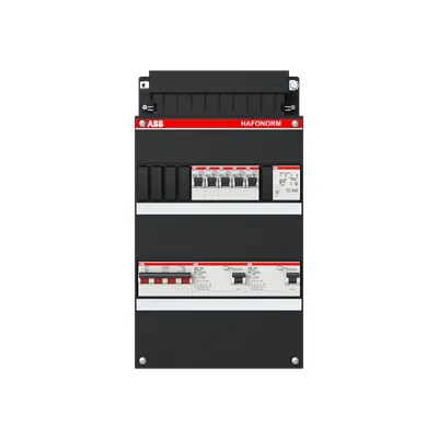 1SPF006908F0121 ABB: Small distribution board equipped Hafonorm MainSw.40A,2xRCD30mA,3+2ways+T,3Ph+N Consumer Unit