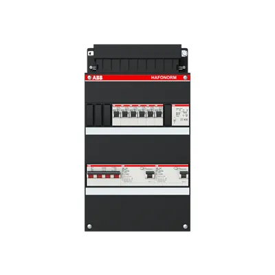 1SPF006908F0169 ABB: Small distribution board equipped Hafonorm MainSw.40A,2xRCD30mA,3+3ways+T,3Ph+N Consumer Unit